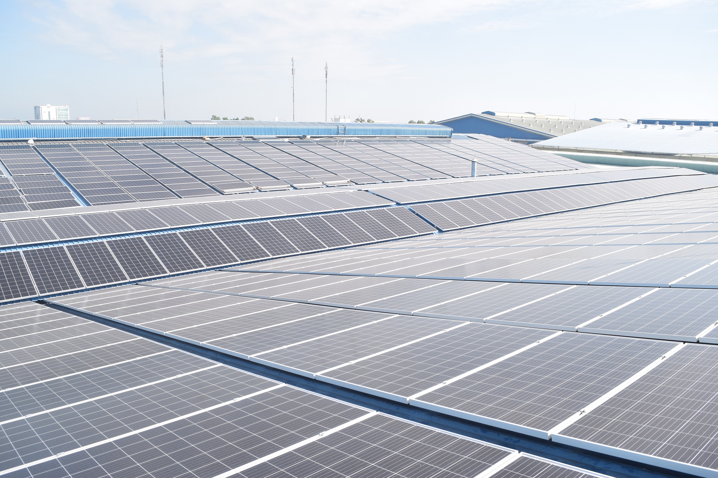 Tên dự án: Dự án Long An 1 Vị trí lắp đặt: Lô Q11-12, đường số 7. KCN Hải Sơn, (GD 3+4), xã Đức Hòa Hạ, huyện Đức Hòa, tỉnh Long An Công suất lắp đặt: 997 KWp Số lượng tâm pin Jinko 385W: 2590 tấm Số lượng Inverter Sungrow: 9